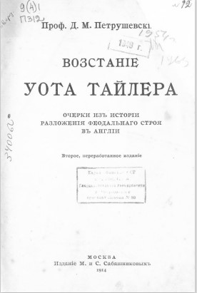 Петрушевский Д. М. Восстание Уота Тайлера : очерки из истории разложения феодального строя в Англии / Д. М. Петрушевский. — 2-е, перераб. изд. — Москва : Изд. М. и С. Сабашниковых, 1914. — [606] с. — Копии страниц книги в формате pdf. — URL: http://elibrary.petrsu.ru/books/12978 (дата обращения: 05.12.2025)