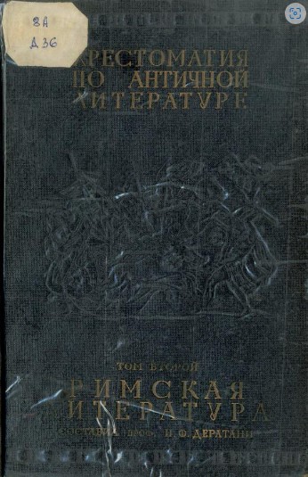 Хрестоматия по античной литературе. Для высших учебных заведений. В 2 томах. Том 2. Римская литература / сост. Н. Ф. Дератани. — Москва : Учпедгиз, 1935. — [250] с. — Копии страниц книги в формате jpg.