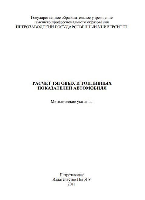 Расчет тяговых и топливных показателей автомобиля : методические указания / Государственное образовательное учреждение высшего профессионального образования Петрозаводский государственный университет ; сост. Л. А. Черняев. — Петрозаводск : Издательство ПетрГУ, 2011. — [25] с. : ил., табл. — URL: http://elibrary.petrsu.ru/books/16144 (дата обращения: 05.12.2025)