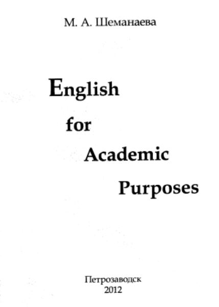 Шеманаева М. А. English for academic purposes : учебное пособие / М. А. Шеманаева. — Петрозаводск : Изд-во ПетрГУ, 2012. — [73] с. — URL: http://elibrary.petrsu.ru/books/17460 (дата обращения: 05.12.2025)