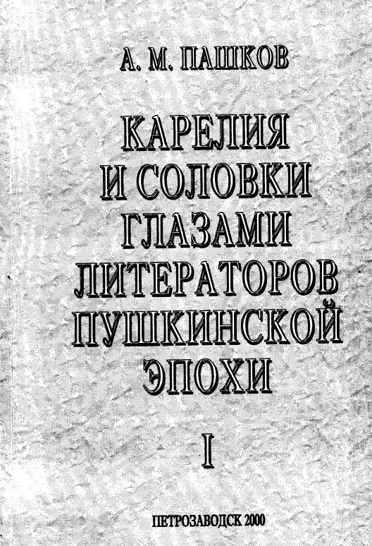 Пашков А. М. Карелия и Соловки глазами литераторов пушкинской эпохи : в 2 т. / А. М. Пашков. — Петрозаводск : Петрозаводский государственный университет, 2000. — Т. 1. — [178] с. — Копии страниц книги в формате pdf. — URL: http://elibrary.petrsu.ru/books/20545 (дата обращения: 05.12.2025)