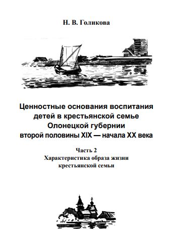 Голикова Н. В. Ценностные основания воспитания детей в крестьянской семье Олонецкой губернии второй половины ХIХ – начала ХХ века : монография : в 3 ч. / Н. В. Голикова. — Петрозаводск : Изд-во ПетрГУ, 2014. — Ч. 2 : Характеристика образа жизни крестьянской семьи. — [84] с. — URL: http://elibrary.petrsu.ru/books/21564 (дата обращения: 05.12.2025)