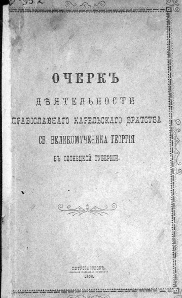 Очеркъ дѢятельности Православнаго Карельскаго Братства Св. Великомученика Георгiя въ Олонецкой губернiи
