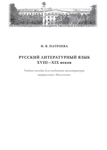 Патроева Н. В. Русский литературный язык XVIII–XIX веков : учебное пособие для студентов магистратуры направления «Филология» / Н. В. Патроева. — Петрозаводск : Изд-во ПетрГУ, 2013. — [68] с. — URL: http://elibrary.petrsu.ru/books/23338 (дата обращения: 05.12.2025)