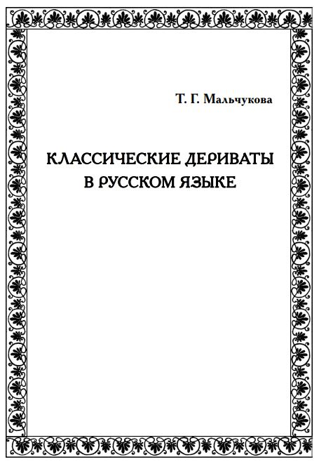 Мальчукова Т. Г. Классические дериваты в русском языке / Т. Г. Мальчукова. — Петрозаводск : Изд-во ПетрГУ, 2016. — [96] с. — URL: http://elibrary.petrsu.ru/books/26565 (дата обращения: 05.12.2025)