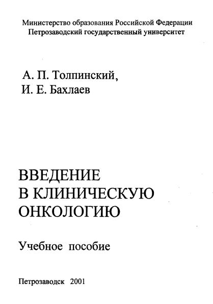 Толпинский А. П. Введение в клиническую онкологию : учебное пособие / А. П. Толпинский, И. Е. Бахлаев. — Петрозаводск, 2001. — [60] с. : ил. — URL: http://elibrary.petrsu.ru/books/26956 (дата обращения: 05.12.2025)