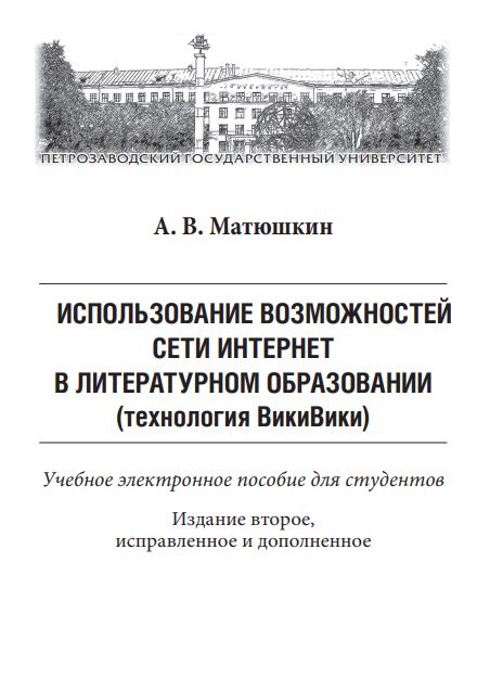 Учебное пособие посвящено использованию вики-технологии в подготовке и усовершенствовании учителей литературы. Теоретическое обоснование рассматриваемых аспектов соединено с опытом их практической реализации. Автор рассматривает как продуктивные, так и «тупиковые» модели построения учебной деятельности с использованием вики-технологии. Описанная методика может быть спроецирована на занятия с учащимися общеобразовательных организаций и образовательных организаций среднего профессионального образования. Издание адресовано студентам направления «Педагогическое образование», педагогам общеобразовательных организаций, образовательных организаций среднего и высшего профессионального образования.