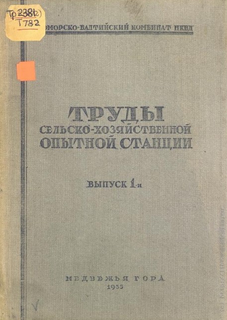 Труды сельскохозяйственной опытной станции. Вып. 1 / Беломорско-Балтийский комбинат НКВД. — Медвежья Гора : КБО ББК, 1935. — [59] с. — Копии страниц книги в формате jpg. — URL: http://elibrary.petrsu.ru/books/27715 (дата обращения: 05.12.2025)