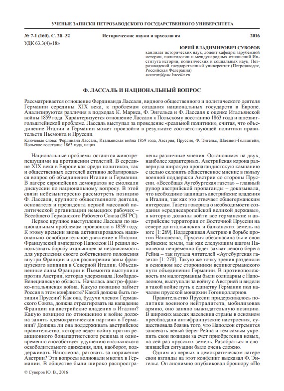 В данной статье рассматривается отношение Фердинанда Лассаля, к проблемам создания национальных государств в Европе.