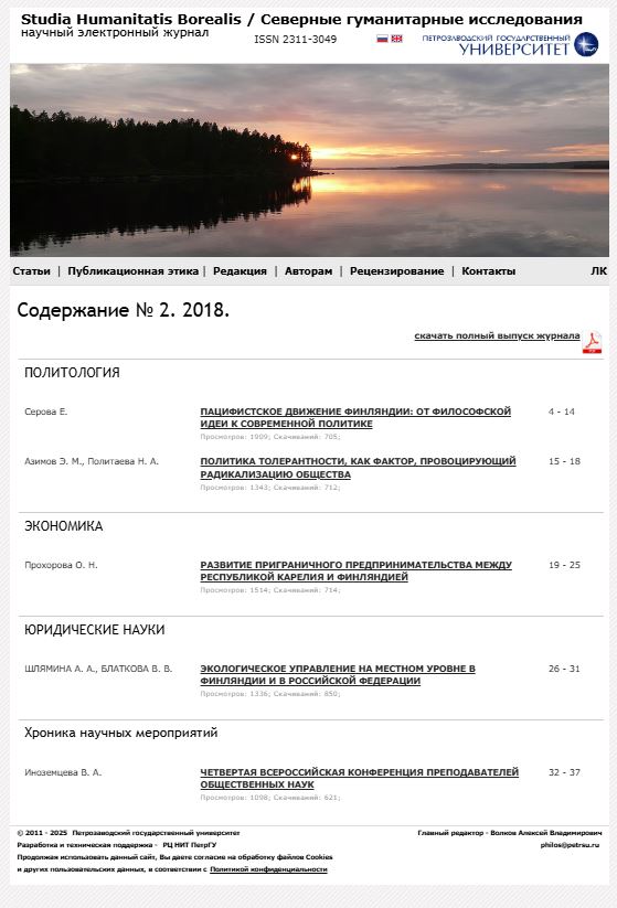 Studia Humanitatis Borealis. 2018. № 2 (11)