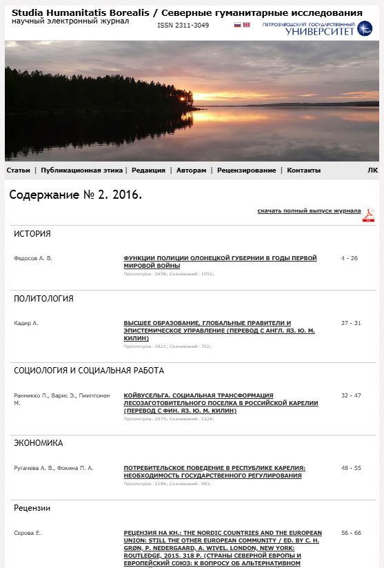 Studia Humanitatis Borealis. 2016. № 2 (7)
