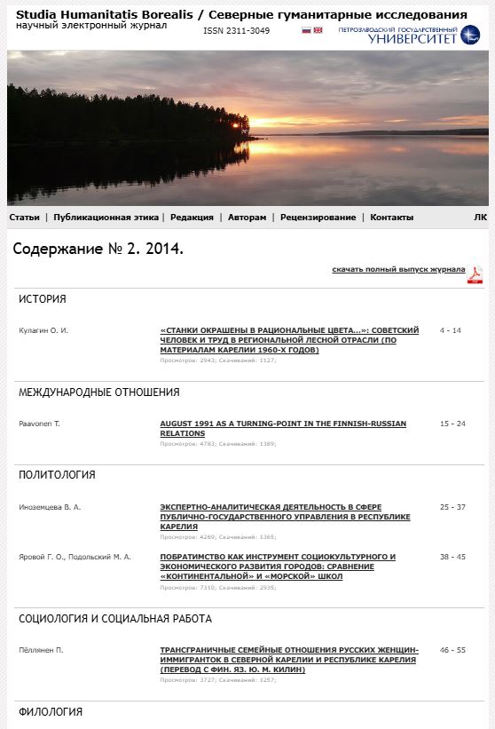 Studia Humanitatis Borealis. 2014. № 2 (3)