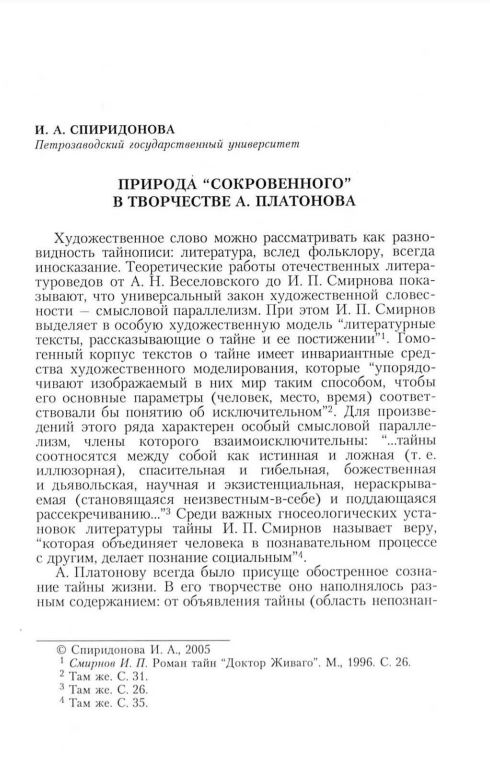 Спиридонова И. А. О природе «сокровенного» в творчестве А. Платонова / И. А. Спиридонова // Проблемы исторической поэтики. — Петрозаводск, 2005. — Вып. 7. — С. 513-524. — URL: http://elibrary.petrsu.ru/books/4911 (дата обращения: 05.12.2025)