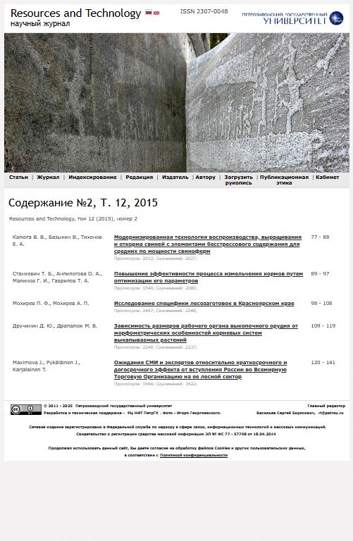 Зависимость размеров рабочего органа выкопочного орудия от морфометрических особенностей корневых систем выкапываемых растенийMaximova Julia, Pykäläinen Jouni, Karjalainen Timo