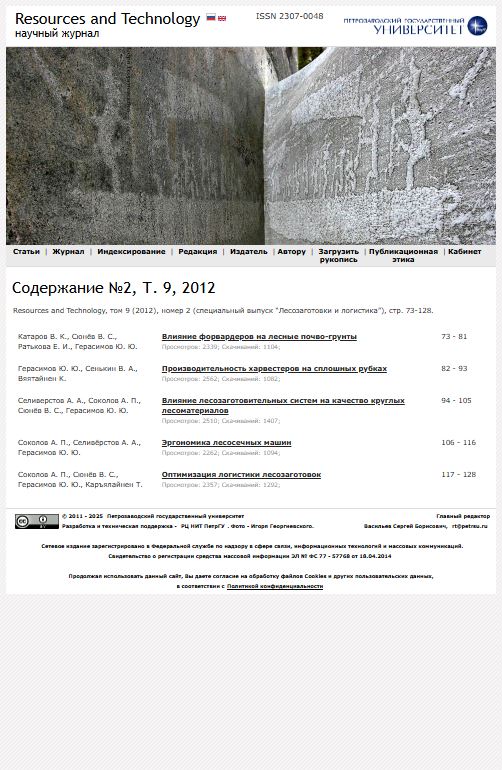 Resources and Technology. 2012. Т. 9. № 2. Лесозаготовки и логистика