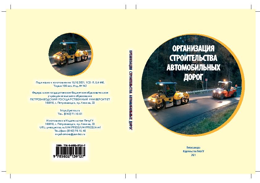 Организация строительства автомобильных дорог : учебное электронное пособие для обучающихся по направлениям подготовки бакалавриата «Строительство» и «Технология лесозаготовительных и деревоперерабатывающих производств» / М-во науки и высш. образования Рос. Федерации, Федер. гос. бюджет. образоват. учреждение высш. образования Петрозав. гос. ун-т. ; сост.: А. В. Степанов и [др.]. — Петрозаводск : Изд-во ПетрГУ, 2021. — [60] с. — URL: http://elibrary.petrsu.ru/books/54013 (дата обращения: 25.12.2025)