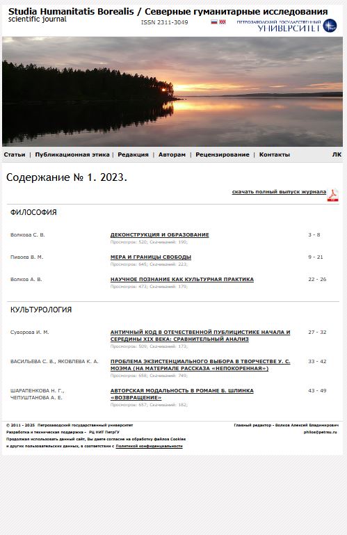Studia Humanitatis Borealis. 2023. № 1 (26)