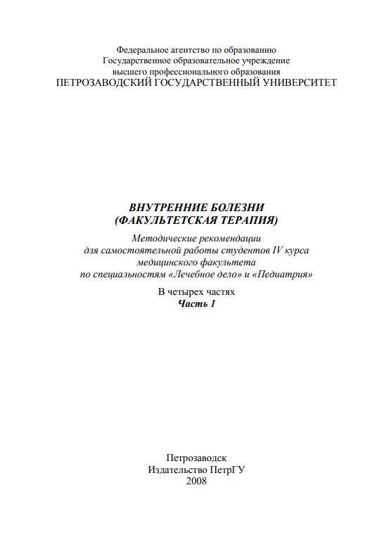 В методических рекомендациях кратко изложена информация о клинике, классификации и лечении основных сердечно-сосудистых болезней и инфекционных болезней. Рассматриваются острая ревматическая лихорадка, митральные и аортальные пороки сердца, инфекционный эндокардит, гипертоническая болезнь, атеросклероз, инфаркт миокарда. Предназначено для студентов IV курса медицинского факультета.
