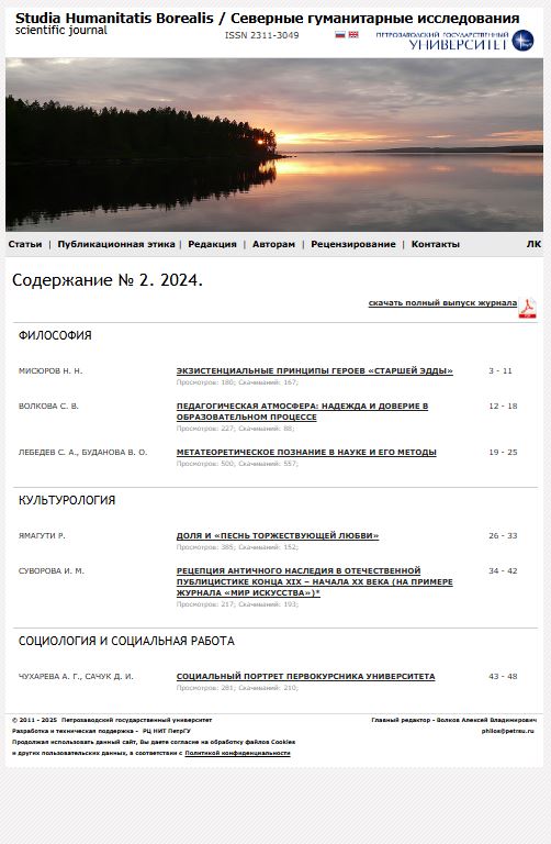 Studia Humanitatis Borealis. 2024. № 2 (31)