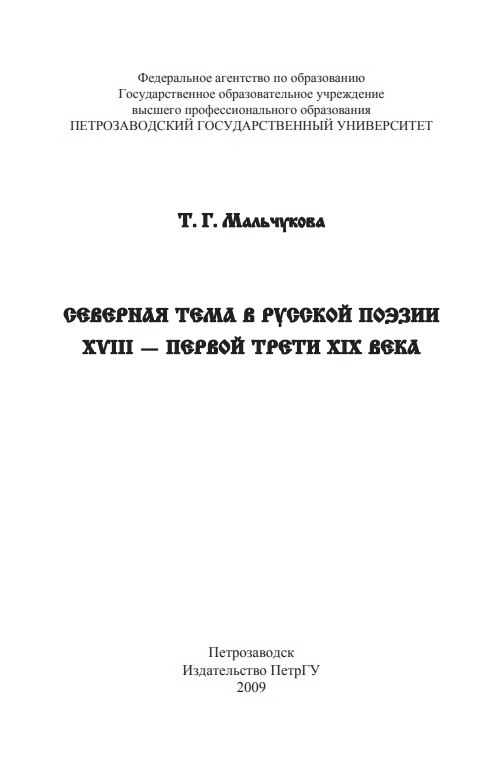 Полезная монография, но, к сожалению, аннотация вводит в заблуждение. Северной теме, в частности, в обозначенный период посвящена более ранняя книга Отто Бёле: Boele O. The North in Russian Romantic Literature. Amsterdam; Atlanta, 1996 (Studies in Slavic Literature and Poetics, Vol. 26). Книги в тематическом плане пересекаются, хотя и не полностью, однако в работе Т.Г.Мальчуковой нет ни одной ссылки на публикации своего нидерландского коллеги, несмотря на то, что главы из его монографии печатались в России по-русски. Предшественников надо упоминать хотя бы из академической вежливости.
