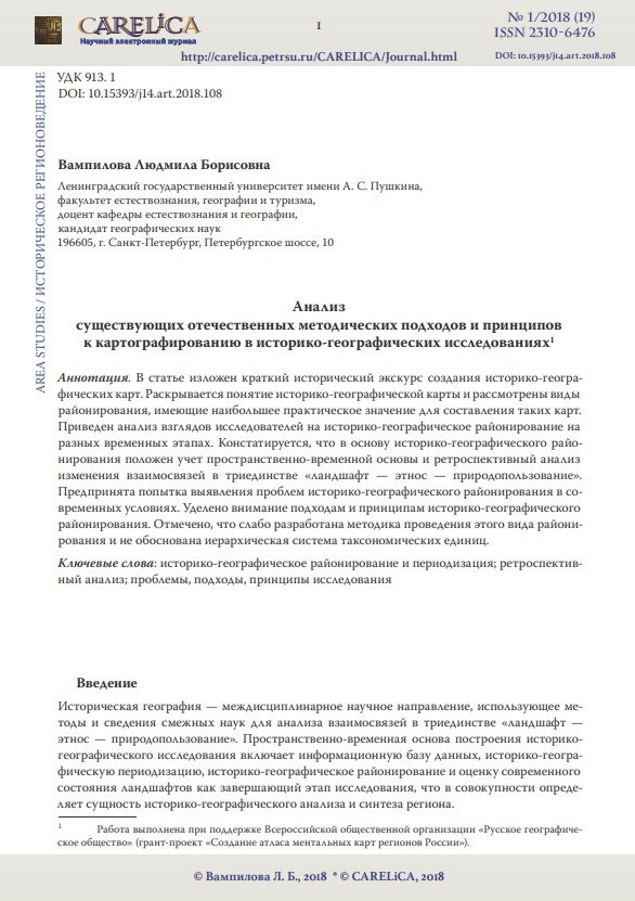 Анализ существующих отечественных методических подходов и принципов к картографированию в историко-географических исследованиях