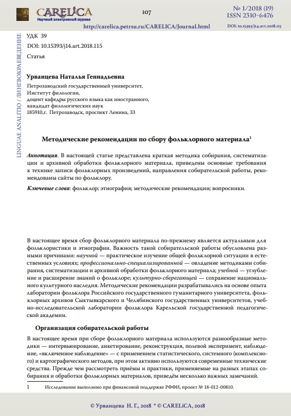 Методические рекомендации по сбору фольклорного материала