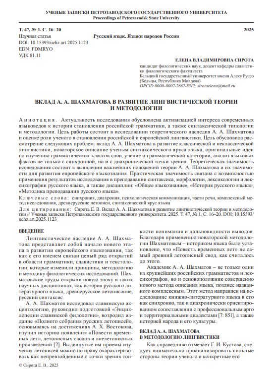 Вклад А. А. Шахматова в развитие лингвистической теории и методологии