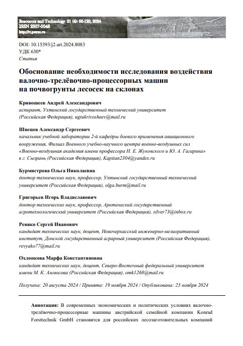 Обоснование необходимости исследования воздействия валочно-трелёвочно-процессорных машин на почвогрунты лесосек на склонахВасильев Владимир Викторович, Афоничев Дмитрий Николаевич