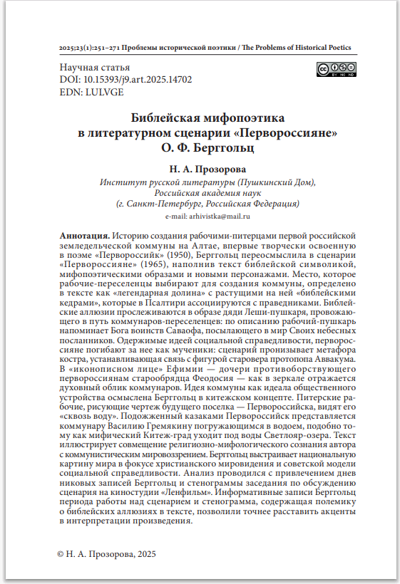 Библейская мифопоэтика в литературном сценарии «Первороссияне» О. Ф. Берггольц