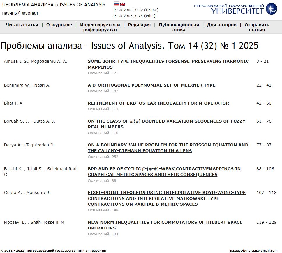 Проблемы анализа – Issues of Analysis. 2025. Т. 14 (32). № 1