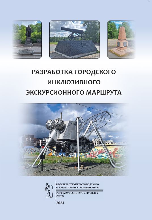 Разработка городского инклюзивного экскурсионного маршрута : учебное пособие для обучающихся по направлению подготовки бакалавриата и магистратуры «Туризм» : учебное электронное издание / М-во науки и высш. образования Рос. Федерации, Федер. гос. бюджет. образоват. учреждение высш. образования Петрозав. гос. ун-т, Ин-т физ. культуры, спорта и туризма ; сост.: В. С. Плотникова, Н. В. Колесникова. — Петрозаводск : Издательство ПетрГУ, 2024. — [66] с. — ISBN 978-5-8021-4234-9.