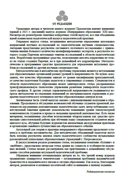 Несмотря на разнообразие тематики конкретных статей выпуска, все они объединены идеей взаимосвязи педагогической науки и педагогической практики.