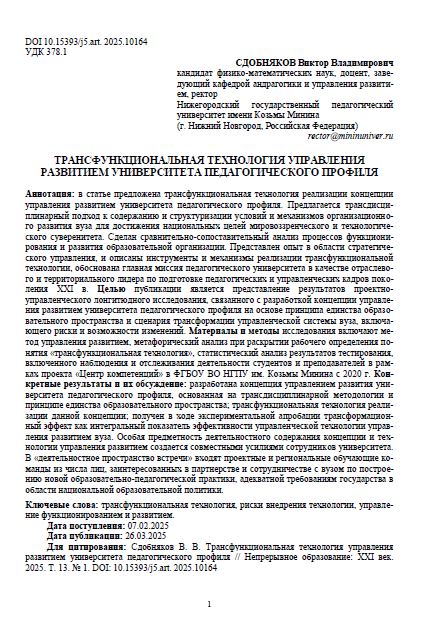 Трансфункциональная технология управления развитием университета педагогического профиля