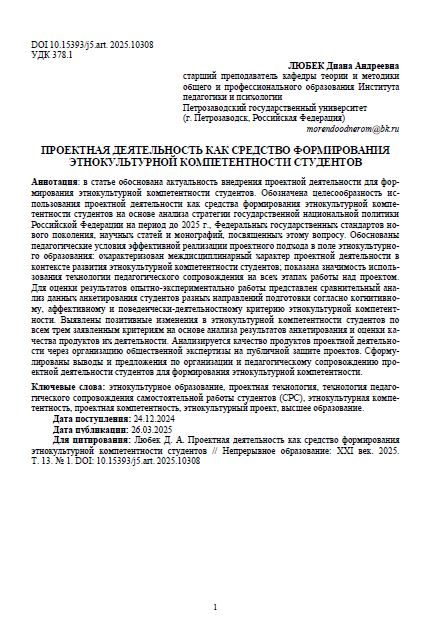 Проектная деятельность как средство формирования этнокультурной компетентности студентов