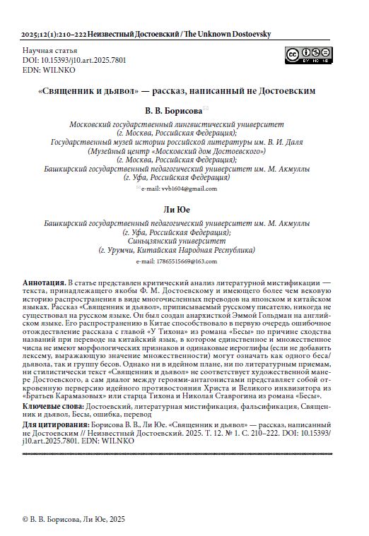 В статье представлен критический анализ литературной мистификации – текста, принадлежащего якобы Ф. М. Достоевскому и имеющего более чем вековую историю распространения в виде многочисленных переводов на японском и китайском языках.