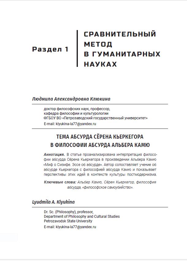 Тема абсурда Сёрена Кьеркегора в философии абсурда Альбера КамюВасильева Инна Вячеславовна