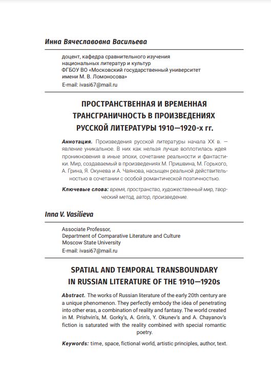 Пространственная и временная трансграничность в произведениях русской литературы 1910–1920-х гг.