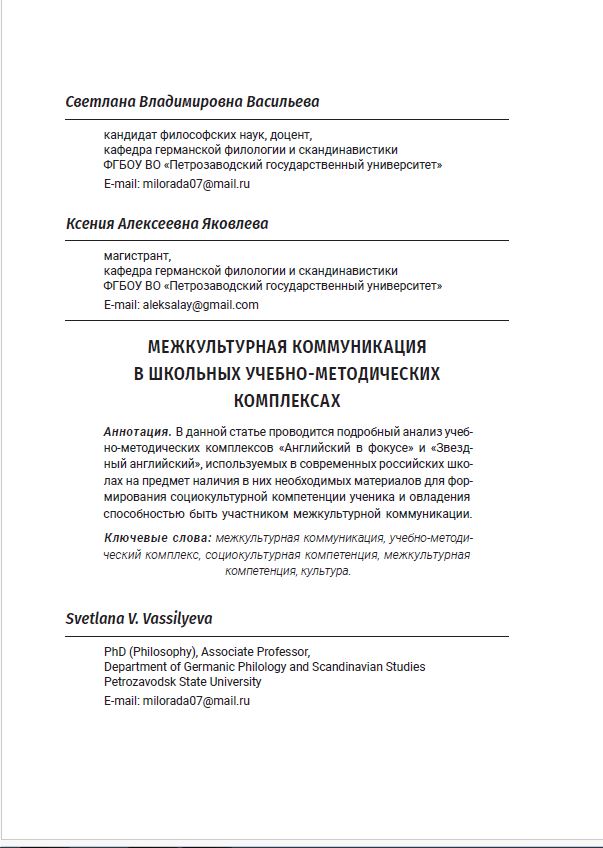 Межкультурная коммуникация в школьных учебно-методических комплексах