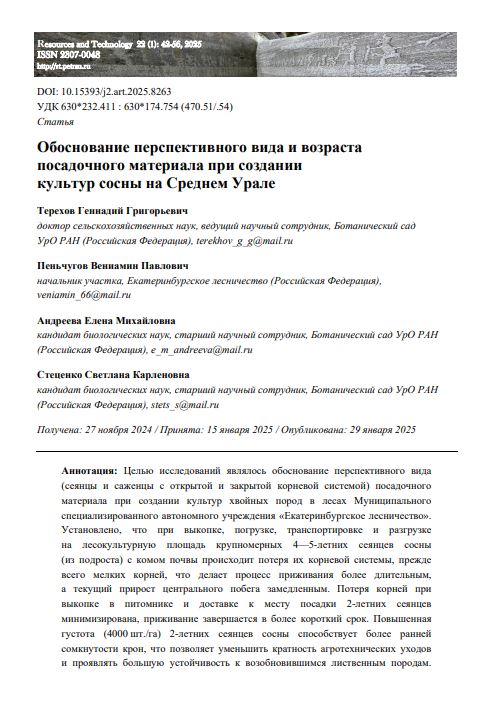 Обоснование перспективного вида и возраста посадочного материала при создании культур сосны на Среднем Урале