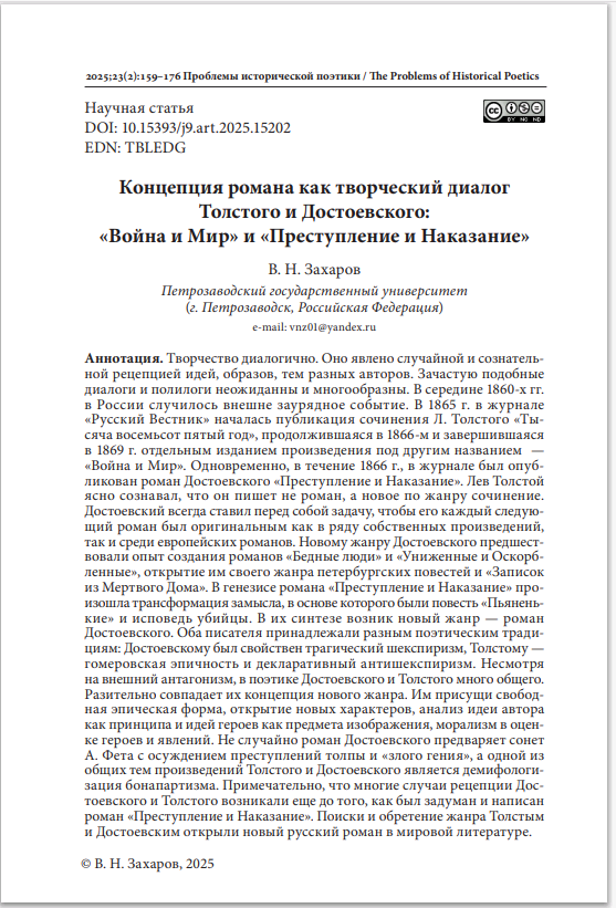 Концепция романа как творческий диалог Толстого и Достоевского: «Война и Мир» и «Преступление и Наказание»Кибальник Сергей Акимович