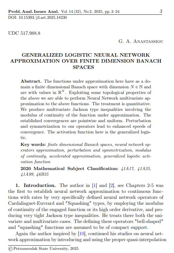Generalized logistic neural network approximation over finite dimension Banach spacesBayraktar B., Gomez L., Napoles J. E.