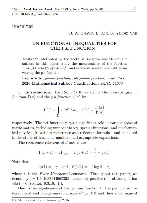 Основываясь на работах Bougotta и Mercer, авторы в этой статье исследуют монотонность функции x--> ψ (1+bx)a/ ψ (1+ax)b и устанавливают несколько неравенств, связанных с функцией psi.
