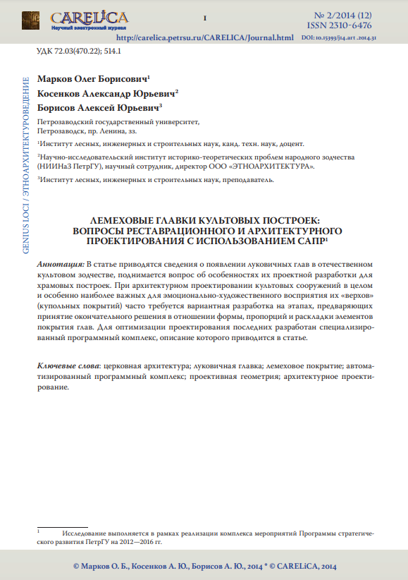 Лемеховые главки культовых построек: вопросы реставрационного и архитектурного проектирования с использованием САПР