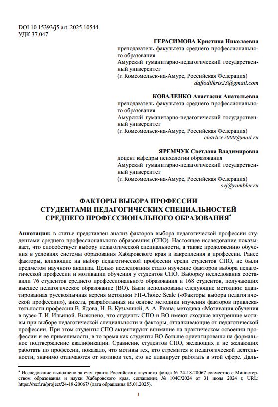 Факторы выбора профессии студентами педагогических специальностей среднего профессионального образования