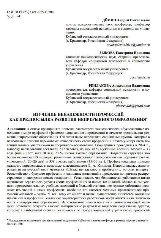 Изучение ненадежности профессий как предпосылка развития непрерывного образования