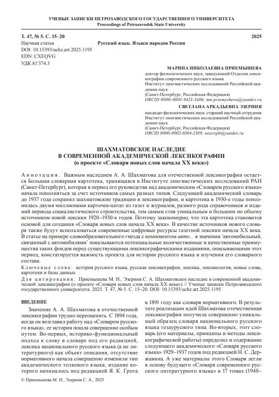 Шахматовское наследие в современной академической лексикографии (о проекте «Словаря новых слов начала ХХ века»)
