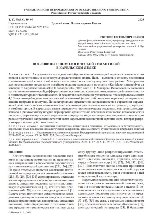Пословицы кильдинского саамского языка: к вопросу о толковании значения паремийИванов Евгений Евгеньевич