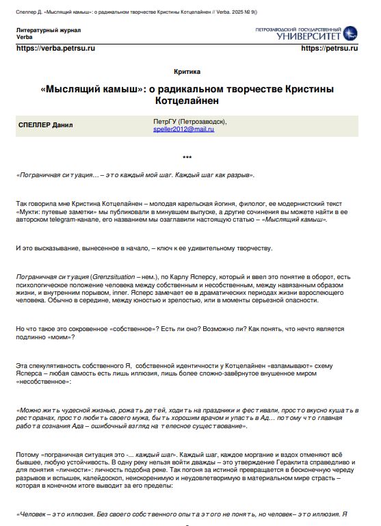 Так говорила мне Кристина Котцелайнен – молодая карельская йогиня, филолог, ее модернистский текст «Мукти: путевые заметки» мы публиковали в минувшем выпуске, а другие сочинения вы можете найти в ее авторском telegram-канале, его названием мы озаглавили настоящую статью – «Мыслящий камыш».