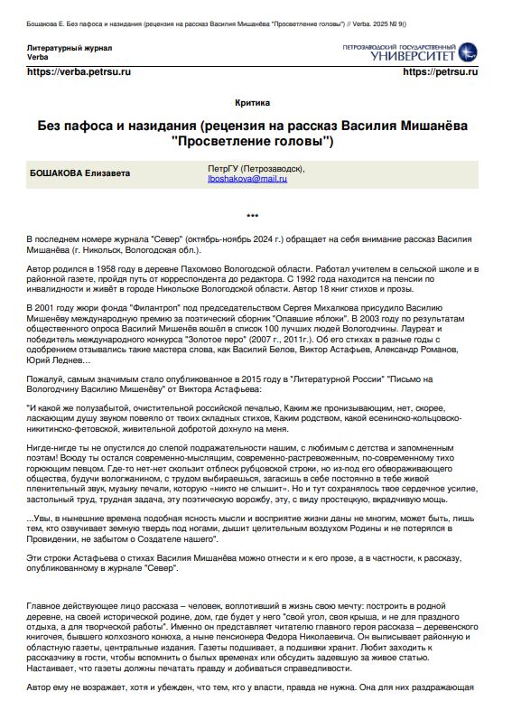 Без пафоса и назидания (рецензия на рассказ Василия Мишанёва «Просветление головы»)