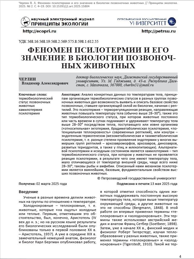 Феномен псилотермии и его значение в биологии позвоночных животных